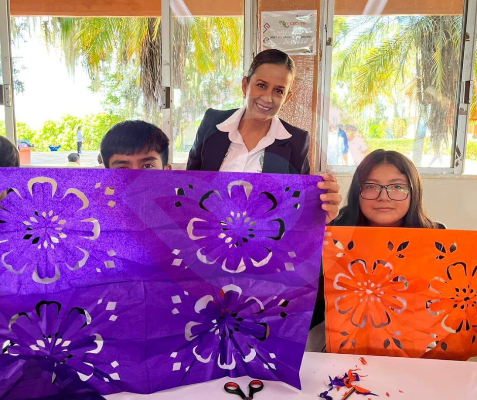 En escuelas realizan taller de elaboración de papel picado