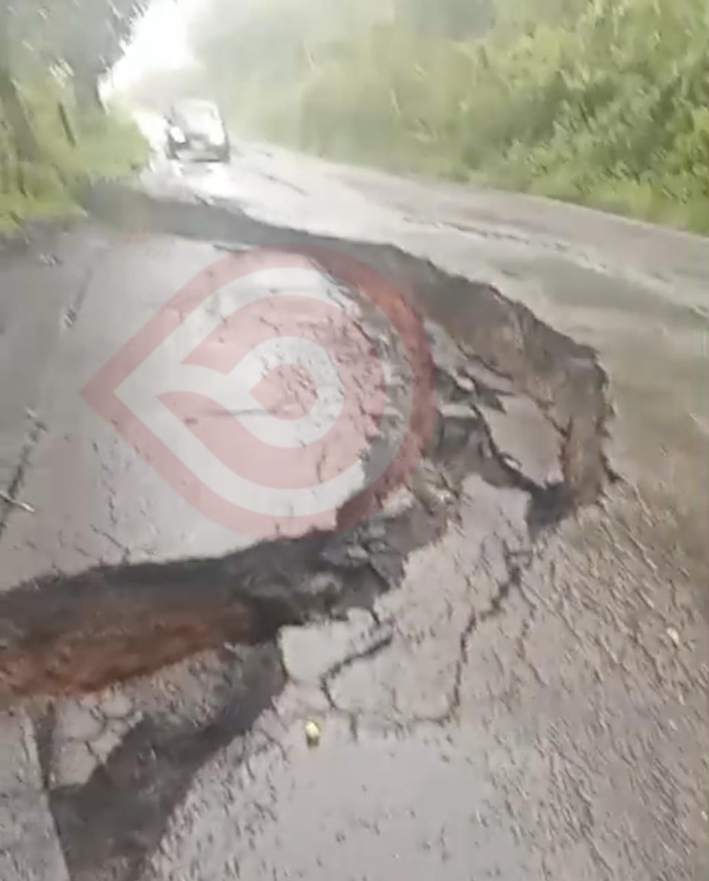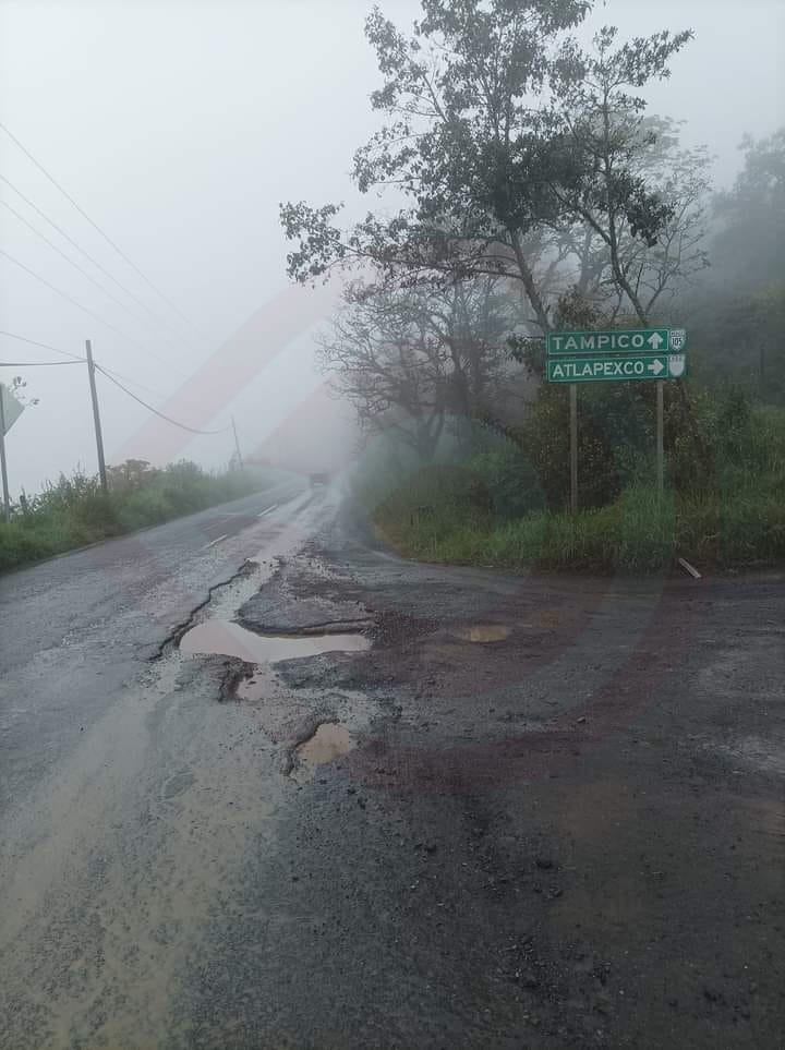 Socavón bloqueo un carril de la vía Huejutla-Pachuca