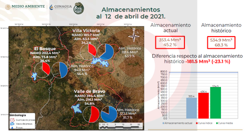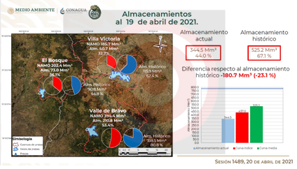 El almacenamiento promedio de los tres principales embalses del Sistema Cutzamala (El Bosque, Valle de Bravo y Villa Victoria), que abastece a una parte de la Zona Metropolitana del Valle de México (ZMVM), se ubicó, al 19 de abril de 2021, en 44%, cifra menor al promedio histórico para esa fecha. Así lo informó el… Seguir leyendo Informe semanal del Comité Nacional de Grandes Presas
