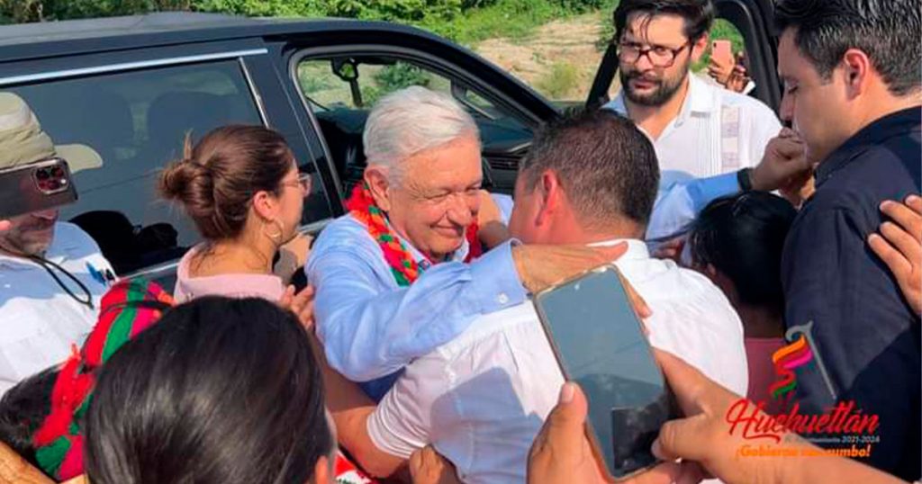 Luego de darse el saludo, ambas autoridades de manera cordial y respeto, el edil, acompañado de Tsalej, representante de las comunidades indígenas de Huehuetlán, presentó al primer mandatario de la Nación, una serie de solicitudes en las que se plasmaron las peticiones, tales como la construcción de un hospital donde se brinde la atención médica puntual a los habitantes, la instalación de una planta tratadora de aguas negras, la cual, es prioritaria para el cuidado y conservación ambiental del río Huichihuayán.