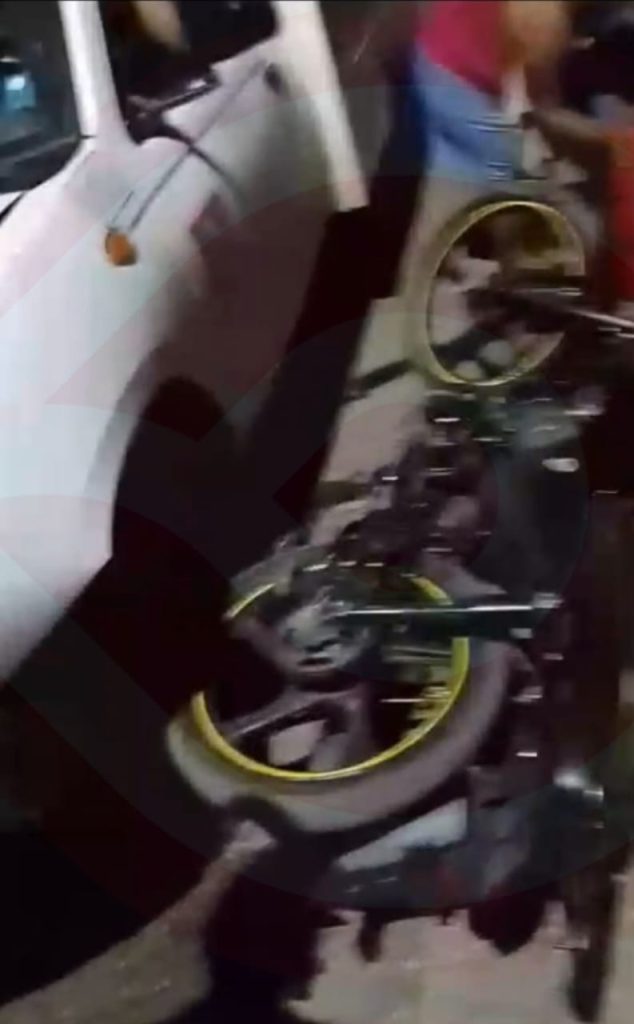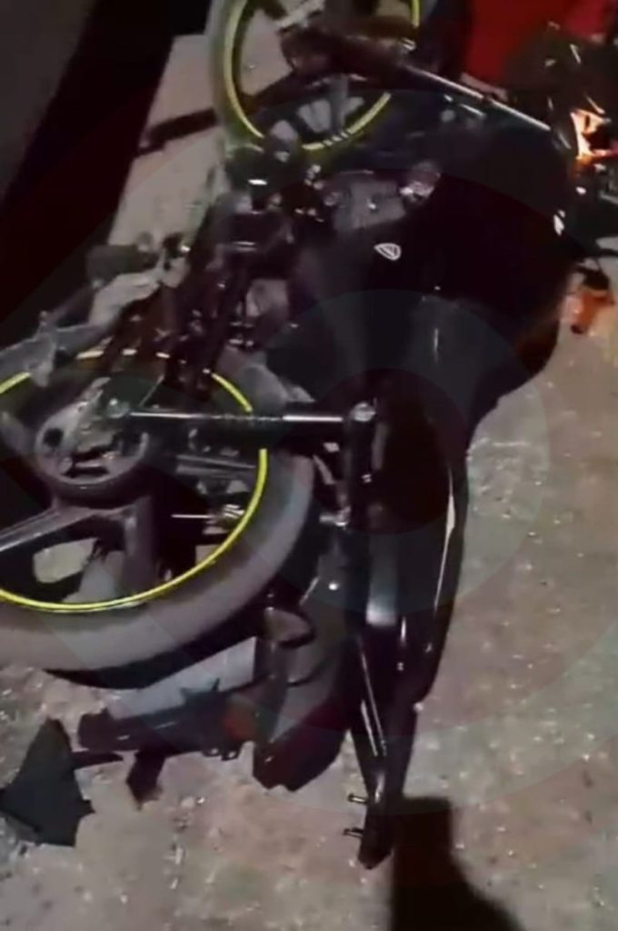 Fue a la altura de San José, perteneciente a Santiago Centro que, el conductor de una camioneta Nissan tipo estaquitas con caja seca, perteneciente a la empresa de botanas Barcel, se impactó de manera dramática contra una motocicleta itálika de color verde con negro, que era tripulada por una joven pareja.