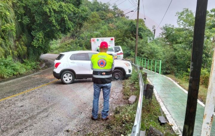 Xilitla, S.L.P.- La mañana de este miércoles se registró un percance vehicular sin lesionados en la carretera federal 120, en el tramo Xilitla-La Y Griega, a la altura de la localidad de El Jobo, a consecuencia del pavimento mojado.