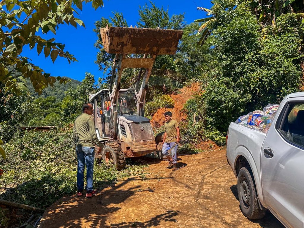 Gracias al apoyo del presidente municipal Óscar Márquez, se dispuso de maquinaria y transporte para remover los deslaves que mantenían obstruido el acceso a la comunidad.