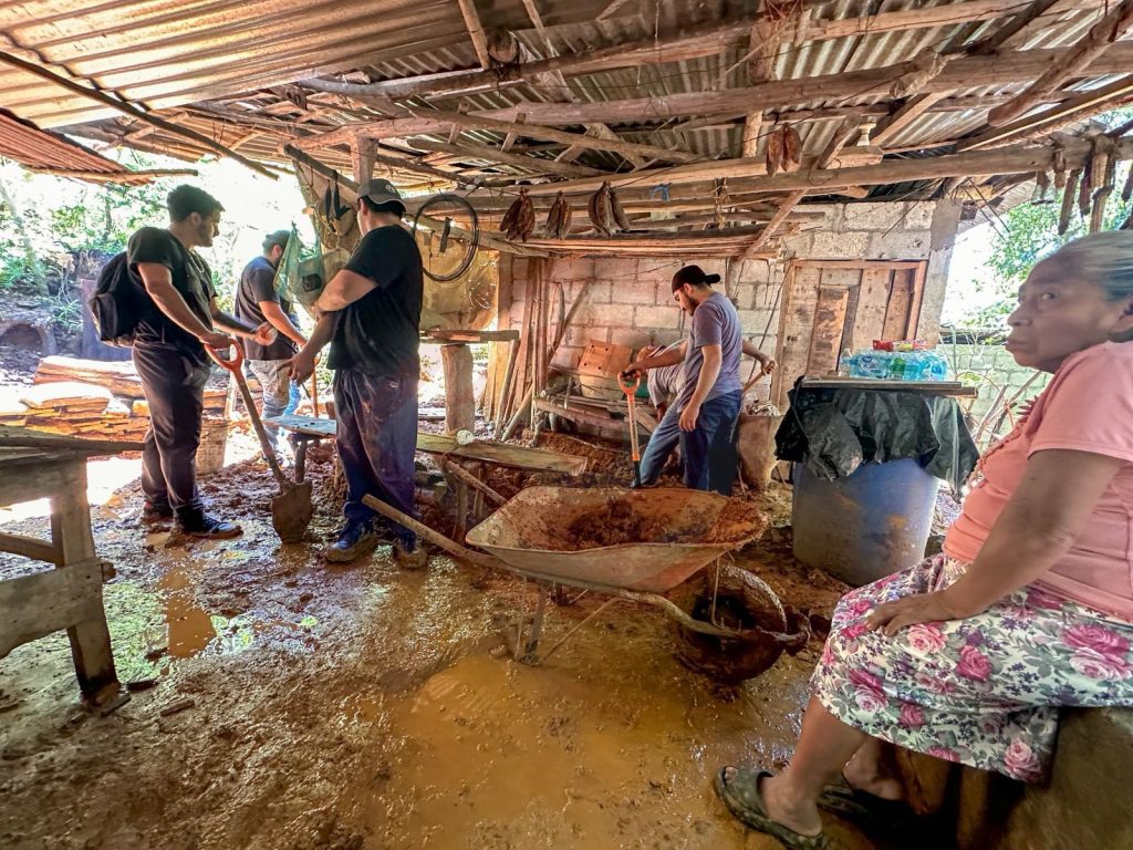 Durante la jornada, el equipo del DIF municipal visitó nuevamente los hogares dañados, donde colaboraron en la limpieza y retiro del lodo que había ingresado a las viviendas de personas adultas mayores.
