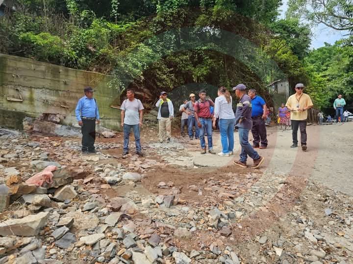 Las acciones de respuesta rápida incluyeron a la localidad de Tenexcalco, donde los habitantes solicitaron el mejoramiento urgente de su vía principal, también dañada por las lluvias.