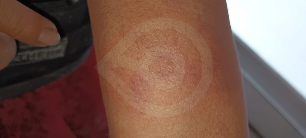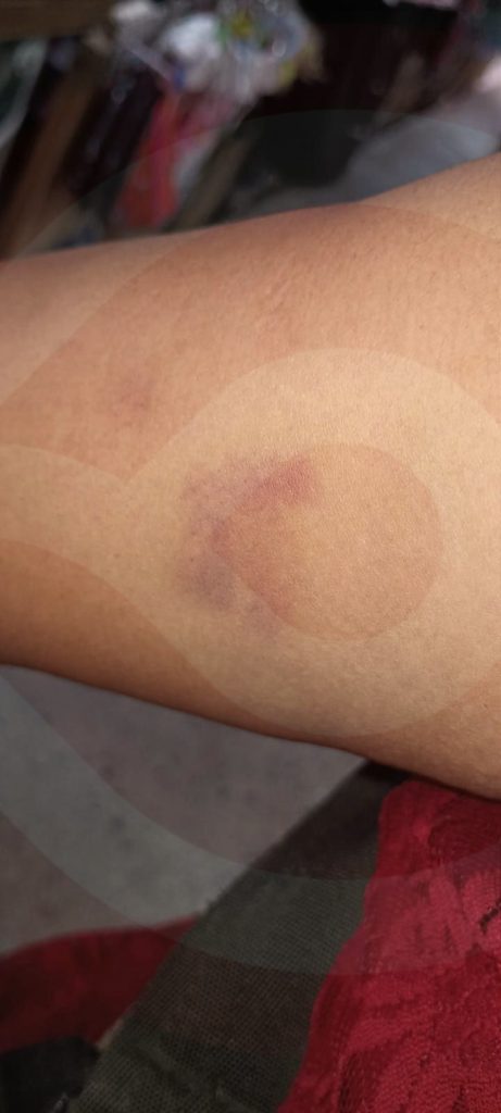 Mostrando diversos moretones en su cuerpo, la mujer de nombre Rufina N refirió que dichos moretones son producto de los golpes que recibió a manos de elementos policiacos.
