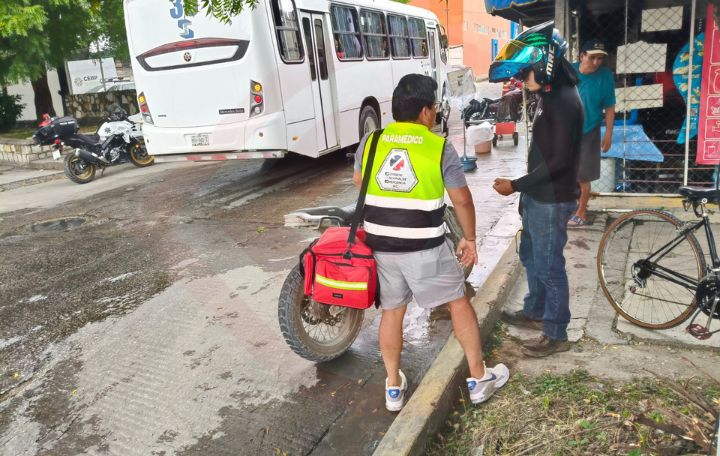 El impacto ocurrió en un costado del vehículo. Aunque el joven motociclista fue auxiliado por brigadistas de la Comisión Nacional de Emergencias, no presentó lesiones y rechazó ser trasladado a un hospital.
