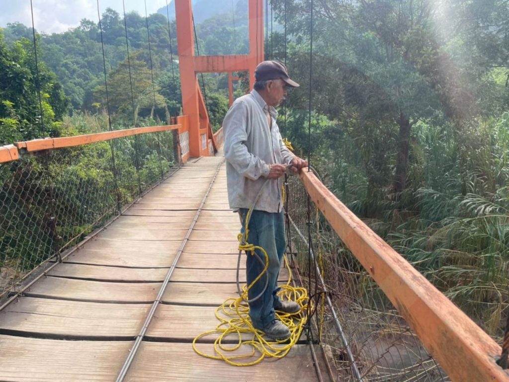 Tamazunchale, S.L.P.- El pasado miércoles 22 de octubre, personal del Ayuntamiento se presentó en la comunidad de Vega Larga para comenzar las labores de rehabilitación del puente colgante que requería atención inmediata por parte de las autoridades municipales, debido a que la creciente del río Moctezuma hizo que la fuerza del agua provocara el colapso del pilar que sostenía el cable tensor del puente, ocasionando daños significativos a la estructura y poniendo en riesgo su operatividad.