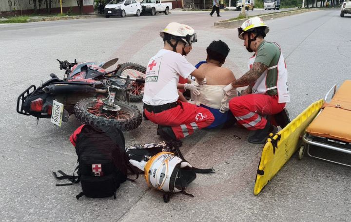 Debido al impacto, el motociclista sufrió diversas lesiones y fue atendido en el sitio por paramédicos de la Cruz Roja, quienes lo trasladaron a un hospital.