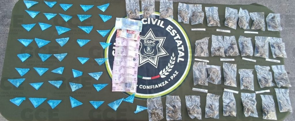 Ciudad Valles, S.L.P.- Un hombre de 43 años fue asegurado por elementos de la Guardia Civil Estatal durante recorridos de vigilancia en la colonia Estación, luego de que se le encontraran diversas dosis de droga entre sus pertenencias.