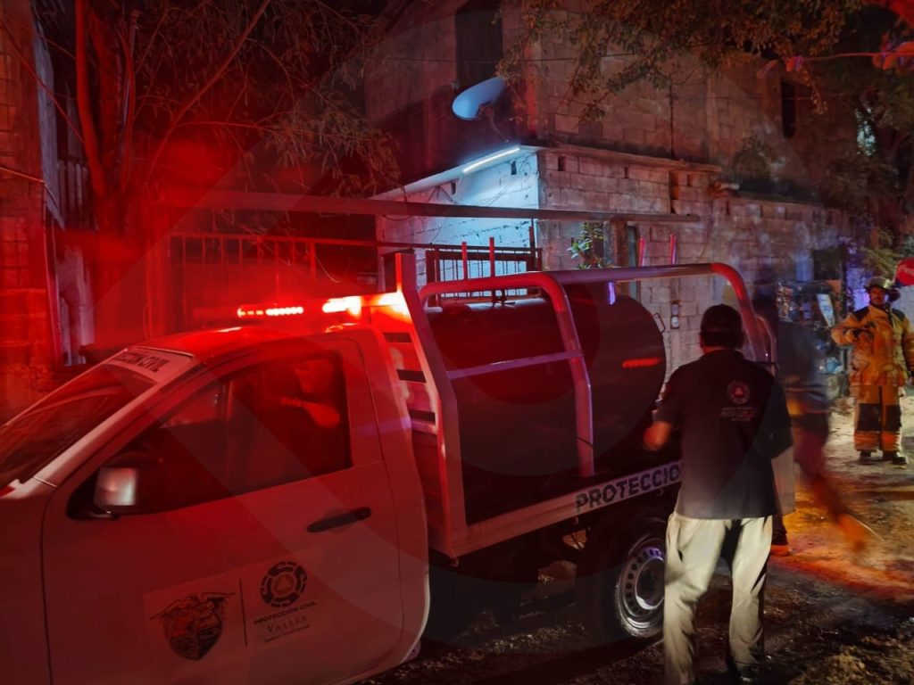 Ciudad Valles, S.L.P.- Un incendio registrado la noche de este lunes en una vivienda de dos pisos ubicada en la calle Tetuán, en la colonia del mismo nombre y a espaldas del taller municipal, generó una intensa movilización de cuerpos de auxilio.