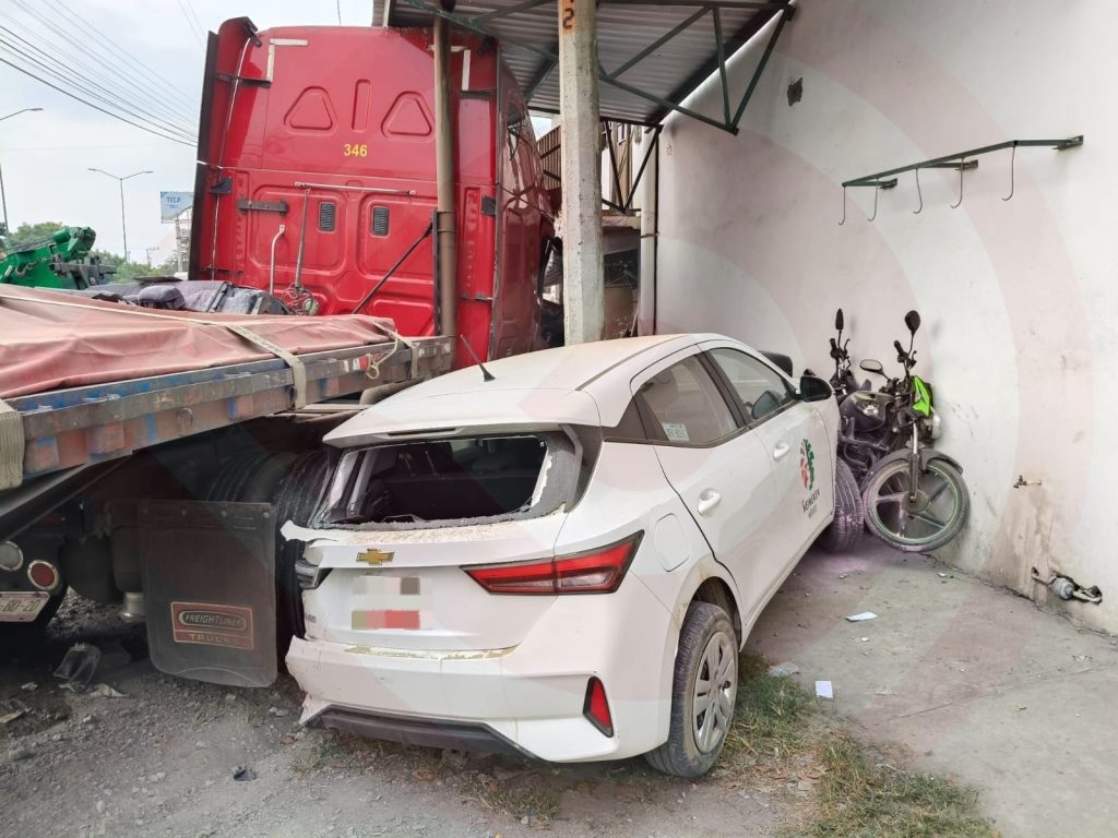 Ciudad Valles, S.L.P.- Un aparatoso accidente se registró la tarde de este martes en la Carretera al Ingenio, luego de que un tráiler se proyectara contra una fila de vehículos estacionados frente a la cervecería Heineken, dejando cuatro personas lesionadas.