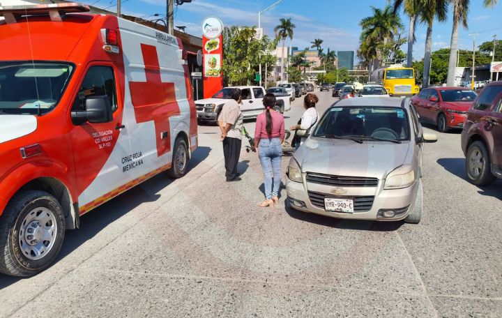 Ciudad Valles, S.L.P.- Un motociclista resultó lesionado luego de verse involucrado en un choque contra un vehículo particular, en el cruce del bulevar México-Laredo con la calle Frontera, frente al cine, durante el mediodía de este miércoles.