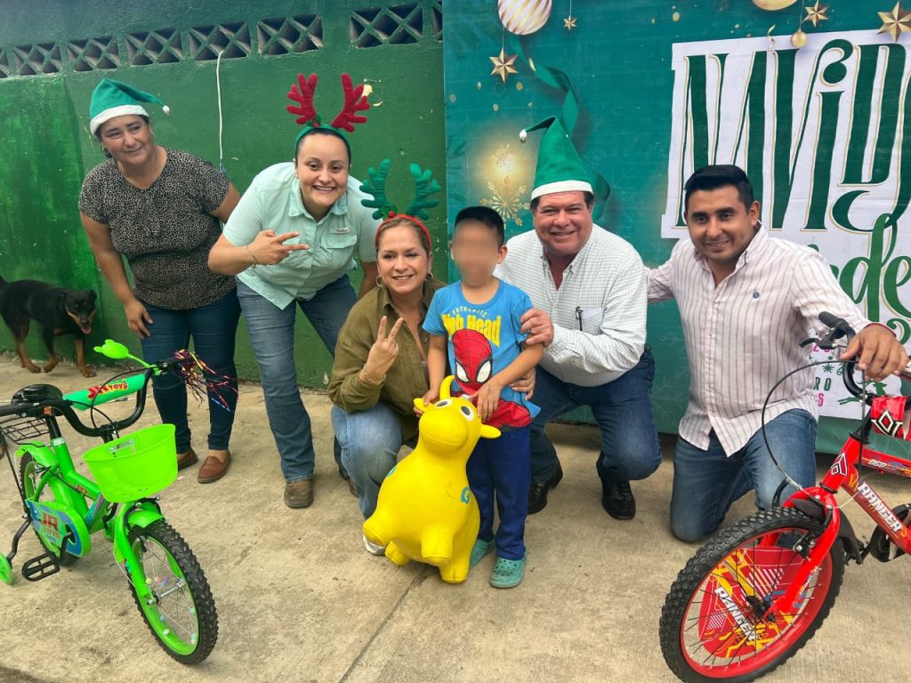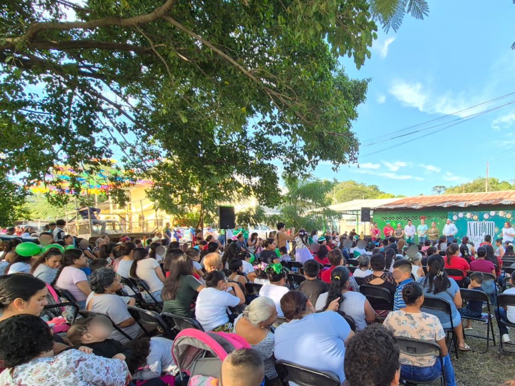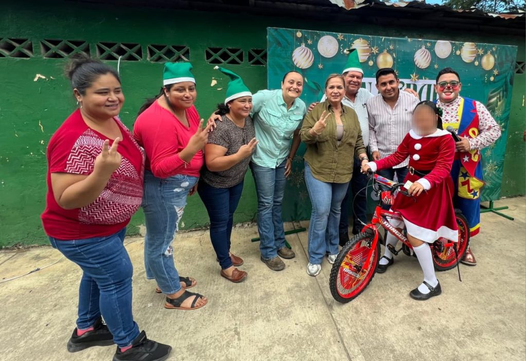 Las actividades iniciaron en la comunidad de Ampliación La Hincada, donde decenas de niñas y niños, acompañados de sus familias, disfrutaron de una tarde llena de sorpresas con la entrega de dulces, juguetes y la rifa de bicicletas, generando un ambiente de convivencia que también reunió a familias de comunidades cercanas.
