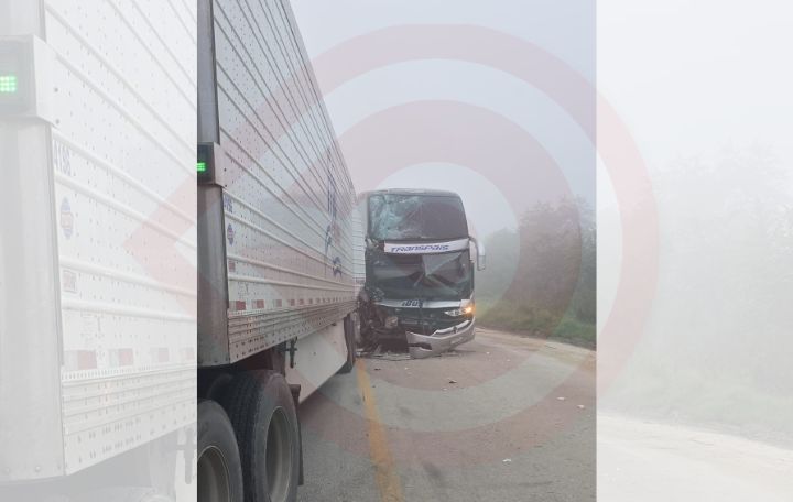 Ciudad Valles, S.L.P.- La falta de visibilidad provocada por la intensa neblina habría sido la causa de un accidente registrado la mañana de este sábado sobre la carretera federal Valles-Mante, donde un autobús de pasajeros se impactó contra un tráiler.