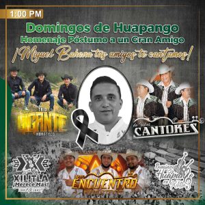 Por: Marcos Sánchez Francisco/Zunoticia. Xilitla, S.L.P.- Este domingo, la plaza principal será escenario de la edición número 822 del tradicional Domingo de Huapango, que en esta ocasión rendirá un homenaje póstumo a Miguel Bahena, presidente municipal de Pisaflores, Hidalgo, asesinado a principios de la presente semana. Bahena fue reconocido en